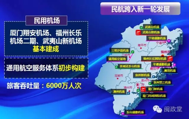 根據(jù)《規(guī)劃》,福建公路網(wǎng)將更加健全完善,鐵路網(wǎng)主骨架基本建成;城市迎來軌道交通時代,民航跨入新一輪發(fā)展;港口群地位更加凸顯,綜合交通樞紐初步形成;基本公共服務全面覆蓋,實現(xiàn)智慧綠色平安發(fā)展。