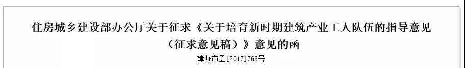 2017年11月,住建部印發(fā)關(guān)于《關(guān)于培育新時(shí)期建筑產(chǎn)業(yè)工人隊(duì)伍的指導(dǎo)意見(征求意見稿)》(建辦市函[2017]763號(hào))。